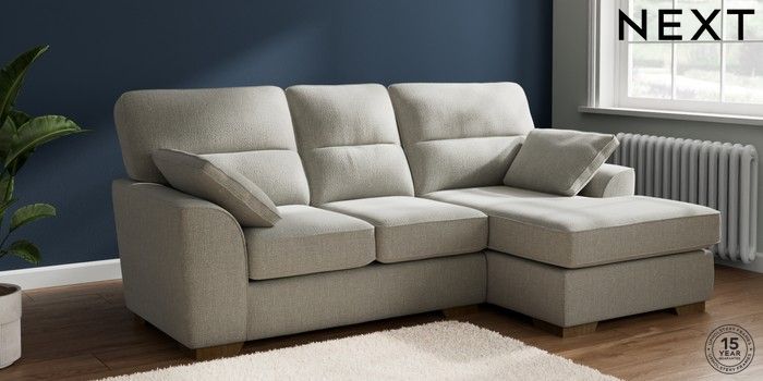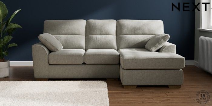7.2.10 Stamford Highback Small Sofa Chaise - Right Hand Chunky Texture Dove Large Square Angle - Mid | Made Click here to use our website with more accessibility support, for example screen readers