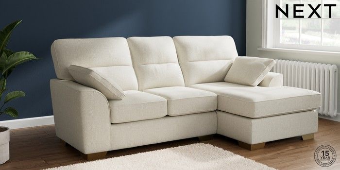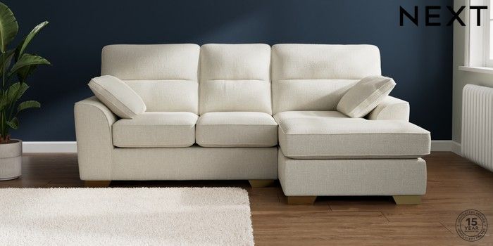 7.2.10 Stamford Highback Small Sofa Chaise - Right Hand Chunky Texture Oyster Large Square Angle - Brushed Brass | Made Click here to use our website with more accessibility support, for example screen readers