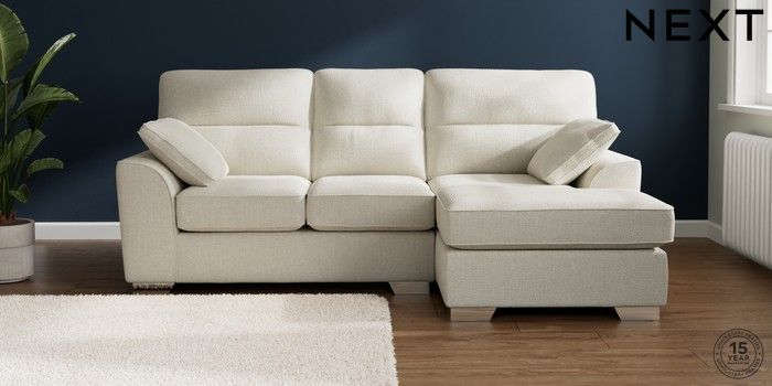 7.2.10 Stamford Highback Small Sofa Chaise - Right Hand Chunky Texture Oyster Large Square Angle - Chrome Metal | Made Click here to use our website with more accessibility support, for example screen readers