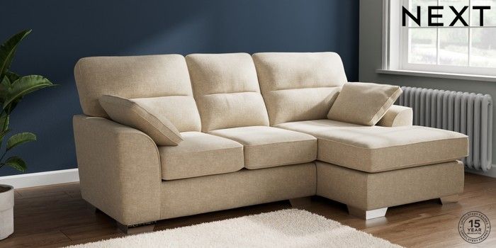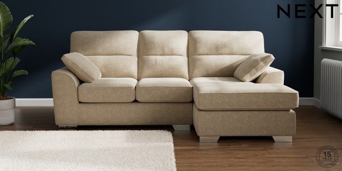 7.2.10 Stamford Highback Small Sofa Chaise - Right Hand Chunky Weave Cream Large Square Angle - Chrome Metal | Made Click here to use our website with more accessibility support, for example screen readers