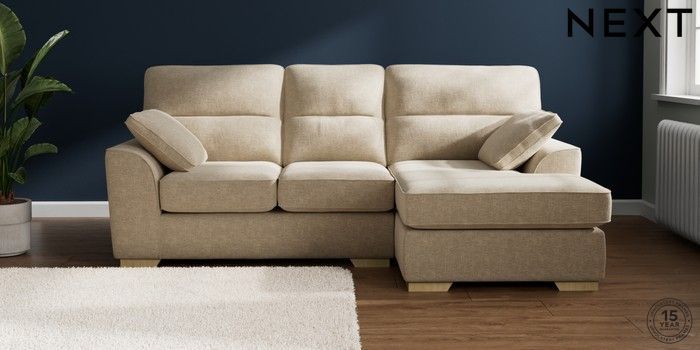 7.2.10 Stamford Highback Small Sofa Chaise - Right Hand Chunky Weave Cream Large Square Angle - Light | Made Click here to use our website with more accessibility support, for example screen readers