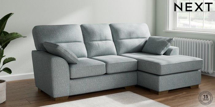 7.2.10 Stamford Highback Small Sofa Chaise - Right Hand Chunky Weave Mid Blue Large Square Angle - Mid | Made Click here to use our website with more accessibility support, for example screen readers