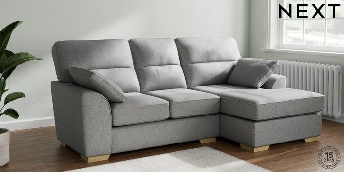 7.2.10 Stamford Highback Small Sofa Chaise - Right Hand Chunky Weave Mid Grey Large Square Angle - Light | Made Click here to use our website with more accessibility support, for example screen readers