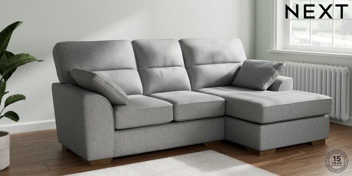 7.2.10 Stamford Highback Small Sofa Chaise - Right Hand Chunky Weave Mid Grey Large Square Angle - Mid | Made Click here to use our website with more accessibility support, for example screen readers
