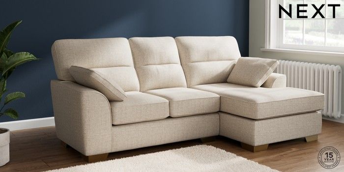 7.2.10 Stamford Highback Small Sofa Chaise - Right Hand Chunky Weave Mid Natural Large Square Angle - Brushed Brass | Made Click here to use our website with more accessibility support, for example screen readers
