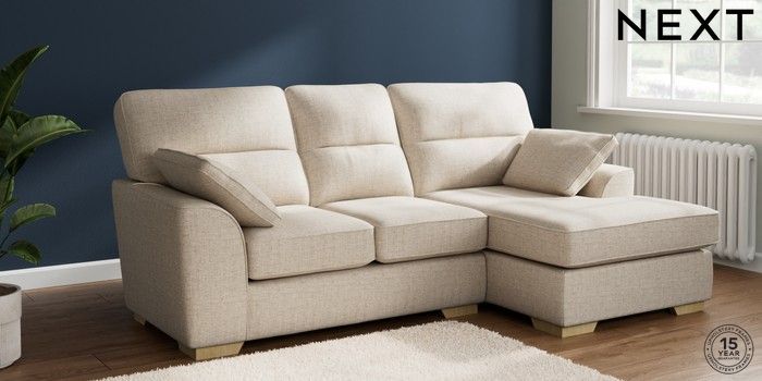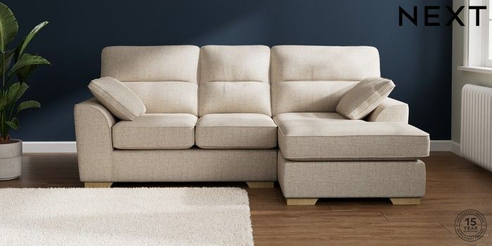 7.2.10 Stamford Highback Small Sofa Chaise - Right Hand Chunky Weave Mid Natural Large Square Angle - Light | Made Click here to use our website with more accessibility support, for example screen readers