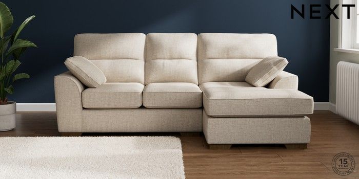 7.2.10 Stamford Highback Small Sofa Chaise - Right Hand Chunky Weave Mid Natural Large Square Angle - Mid | Made Click here to use our website with more accessibility support, for example screen readers
