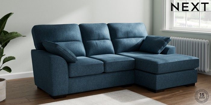 7.2.10 Stamford Highback Small Sofa Chaise - Right Hand Cotswold Chenille Dark Blue Large Square Angle - Dark | Made Click here to use our website with more accessibility support, for example screen readers