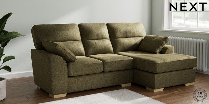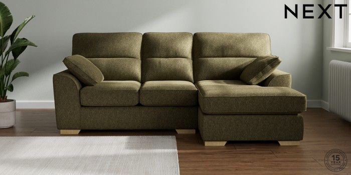 7.2.10 Stamford Highback Small Sofa Chaise - Right Hand Cotswold Chenille Dark Green Large Square Angle - Light | Made Click here to use our website with more accessibility support, for example screen readers