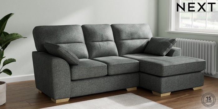 7.2.10 Stamford Highback Small Sofa Chaise - Right Hand Cotswold Chenille Dark Grey Large Square Angle - Light | Made Click here to use our website with more accessibility support, for example screen readers