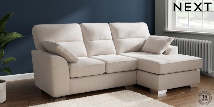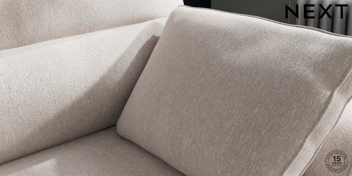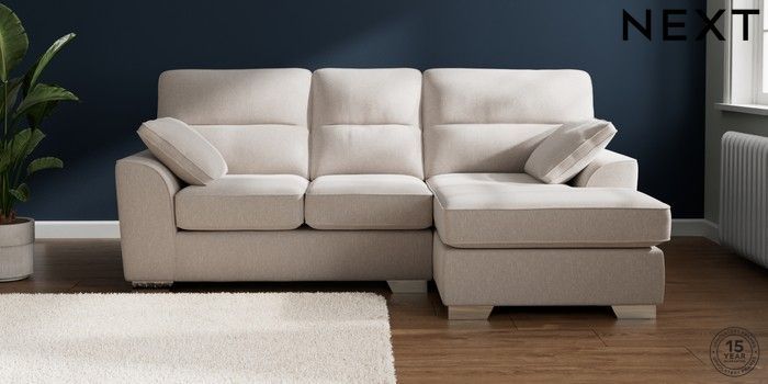 7.2.10 Stamford Highback Small Sofa Chaise - Right Hand Cotswold Chenille Oyster Large Square Angle - Chrome Metal | Made Click here to use our website with more accessibility support, for example screen readers