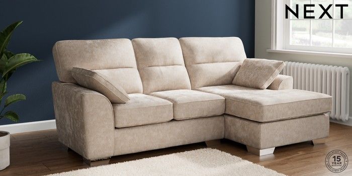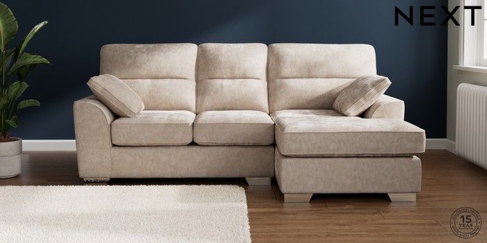 7.2.10 Stamford Highback Small Sofa Chaise - Right Hand Distressed Velour Mid Natural Large Square Angle - Chrome Metal | Made Click here to use our website with more accessibility support, for example screen readers