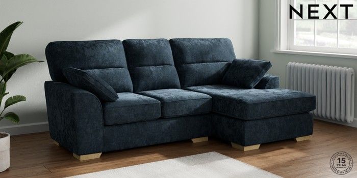 7.2.10 Stamford Highback Small Sofa Chaise - Right Hand Distressed Velour Midnight Blue Large Square Angle - Light | Made Click here to use our website with more accessibility support, for example screen readers