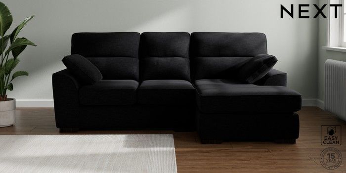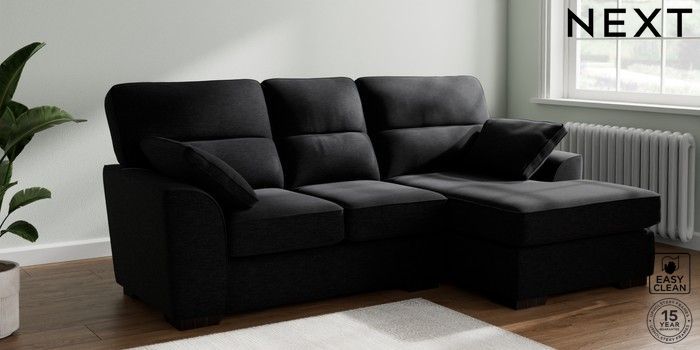 7.2.10 Stamford Highback Small Sofa Chaise - Right Hand Fine Chenille Easy Clean Black Large Square Angle - Dark | Made Click here to use our website with more accessibility support, for example screen readers