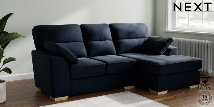7.2.10 Stamford Highback Small Sofa Chaise - Right Hand Fine Chenille Easy Clean Dark Navy Blue Large Square Angle - Light | Made Click here to use our website with more accessibility support, for example screen readers