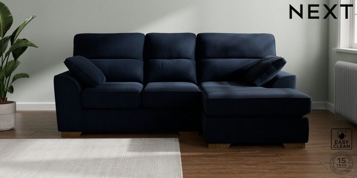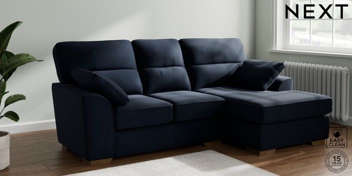 7.2.10 Stamford Highback Small Sofa Chaise - Right Hand Fine Chenille Easy Clean Dark Navy Blue Large Square Angle - Mid | Made Click here to use our website with more accessibility support, for example screen readers