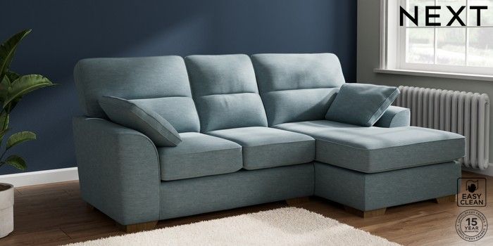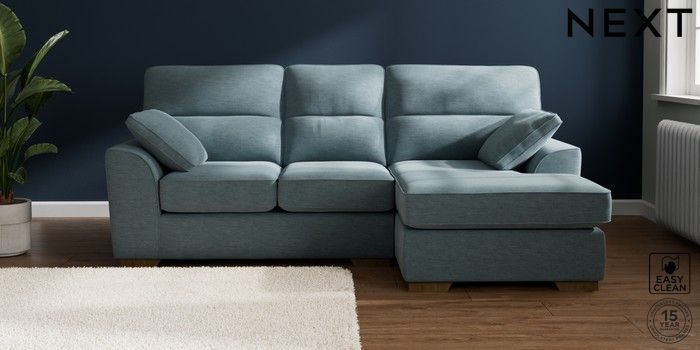 7.2.10 Stamford Highback Small Sofa Chaise - Right Hand Fine Chenille Easy Clean Mid Blue Large Square Angle - Mid | Made Click here to use our website with more accessibility support, for example screen readers