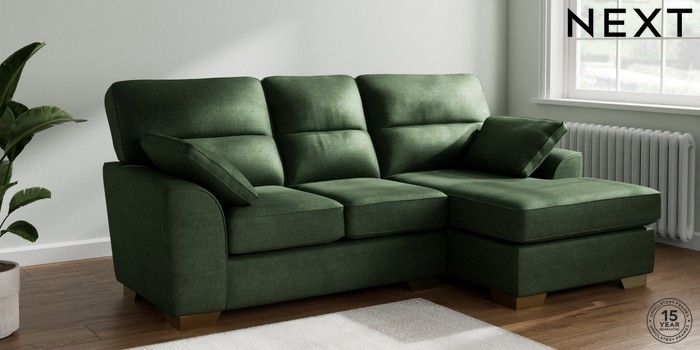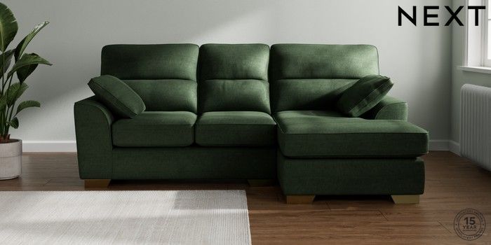 7.2.10 Stamford Highback Small Sofa Chaise - Right Hand Luxe Chenille Dark Green Large Square Angle - Brushed Brass | Made Click here to use our website with more accessibility support, for example screen readers