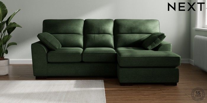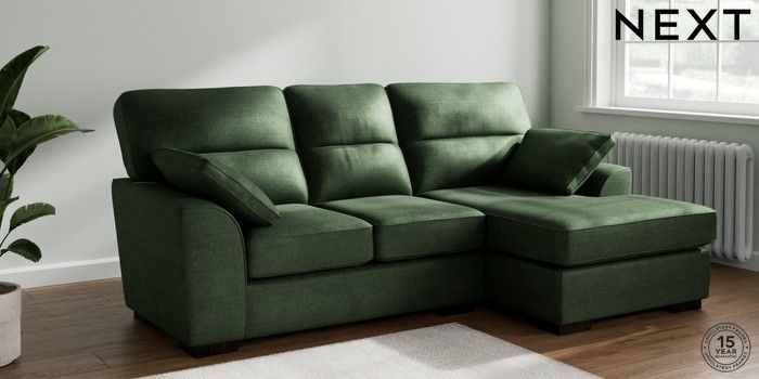7.2.10 Stamford Highback Small Sofa Chaise - Right Hand Luxe Chenille Dark Green Large Square Angle - Dark | Made Click here to use our website with more accessibility support, for example screen readers