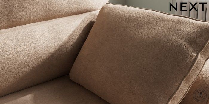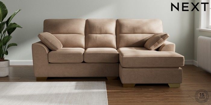7.2.10 Stamford Highback Small Sofa Chaise - Right Hand Luxe Chenille Mid Natural Large Square Angle - Brushed Brass | Made Click here to use our website with more accessibility support, for example screen readers