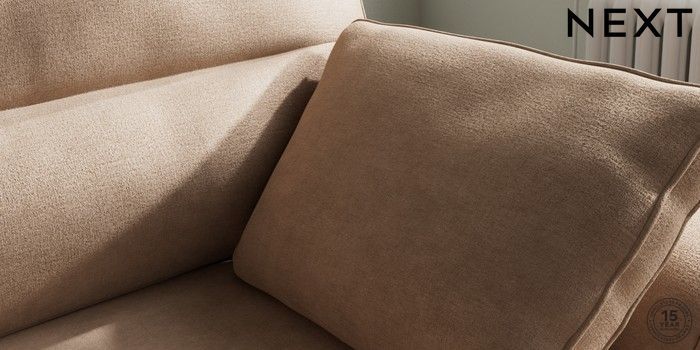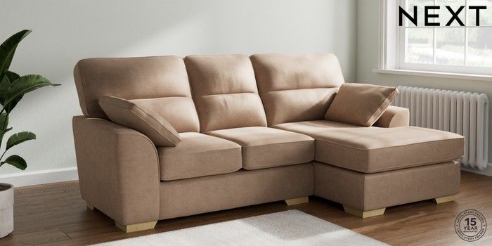 7.2.10 Stamford Highback Small Sofa Chaise - Right Hand Luxe Chenille Mid Natural Large Square Angle - Light | Made Click here to use our website with more accessibility support, for example screen readers
