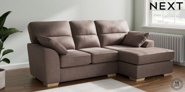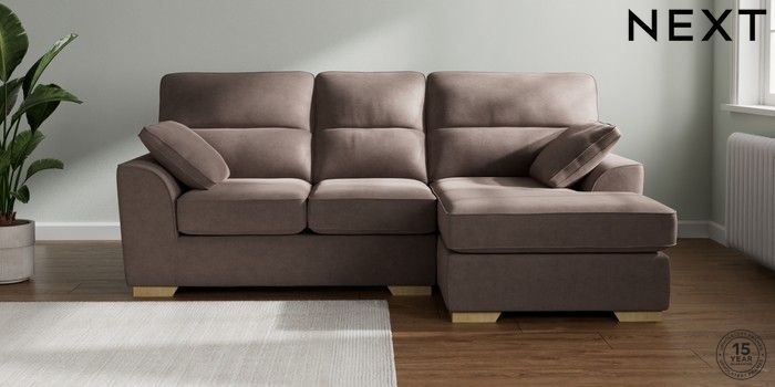 7.2.10 Stamford Highback Small Sofa Chaise - Right Hand Luxe Chenille Mink Brown Large Square Angle - Light | Made Click here to use our website with more accessibility support, for example screen readers