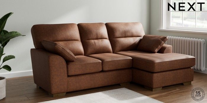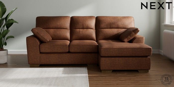7.2.10 Stamford Highback Small Sofa Chaise - Right Hand Monza Faux Leather Easy Clean Chestnut Brown Large Square Angle - Mid | Made Click here to use our website with more accessibility support, for example screen readers