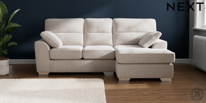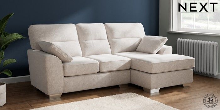 7.2.10 Stamford Highback Small Sofa Chaise - Right Hand Multi Weave Oyster Large Square Angle - Chrome Metal | Made Click here to use our website with more accessibility support, for example screen readers