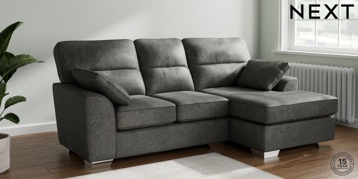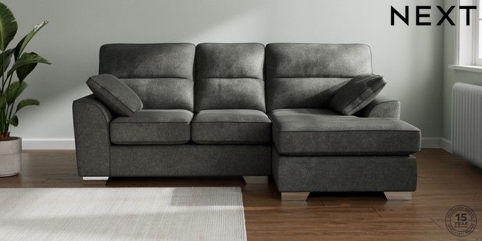 7.2.10 Stamford Highback Small Sofa Chaise - Right Hand Plush Chenille Dark Grey Large Square Angle - Chrome Metal | Made Click here to use our website with more accessibility support, for example screen readers