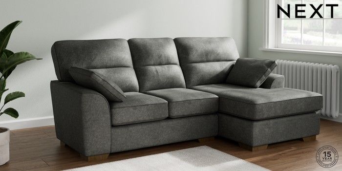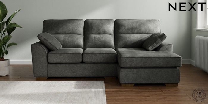 7.2.10 Stamford Highback Small Sofa Chaise - Right Hand Plush Chenille Dark Grey Large Square Angle - Mid | Made Click here to use our website with more accessibility support, for example screen readers