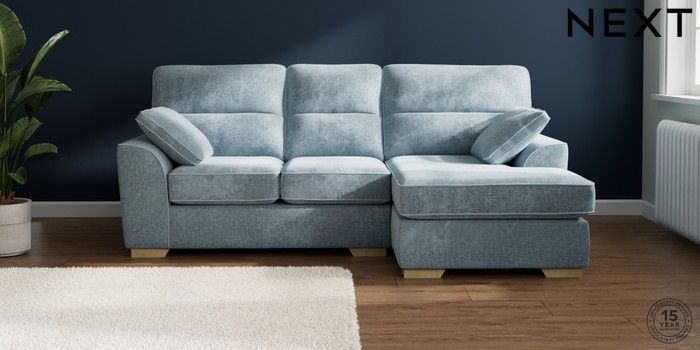 7.2.10 Stamford Highback Small Sofa Chaise - Right Hand Plush Chenille Light Blue Large Square Angle - Light | Made Click here to use our website with more accessibility support, for example screen readers