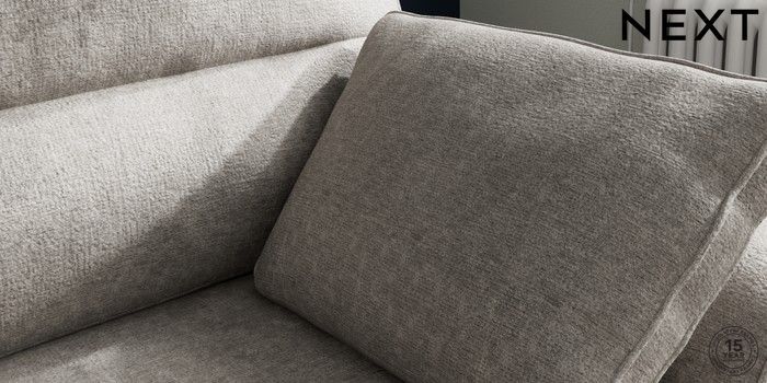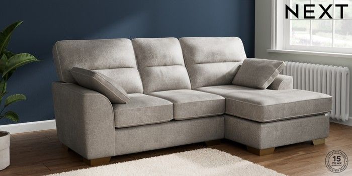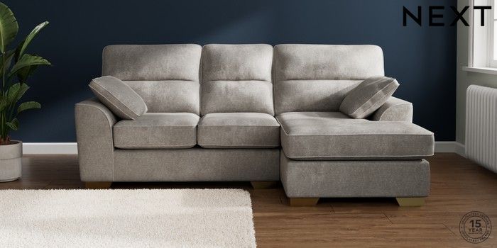 7.2.10 Stamford Highback Small Sofa Chaise - Right Hand Plush Chenille Light Grey Large Square Angle - Brushed Brass | Made Click here to use our website with more accessibility support, for example screen readers
