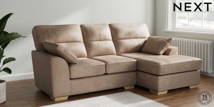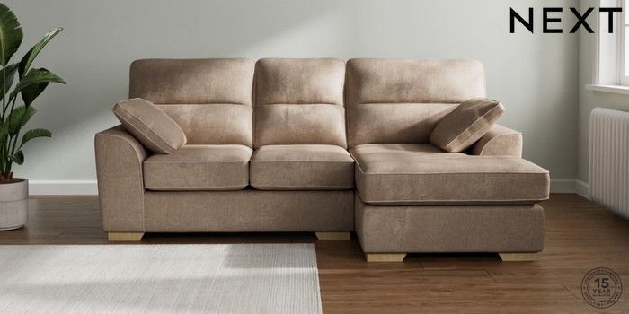 7.2.10 Stamford Highback Small Sofa Chaise - Right Hand Plush Chenille Mid Natural Large Square Angle - Light | Made Click here to use our website with more accessibility support, for example screen readers