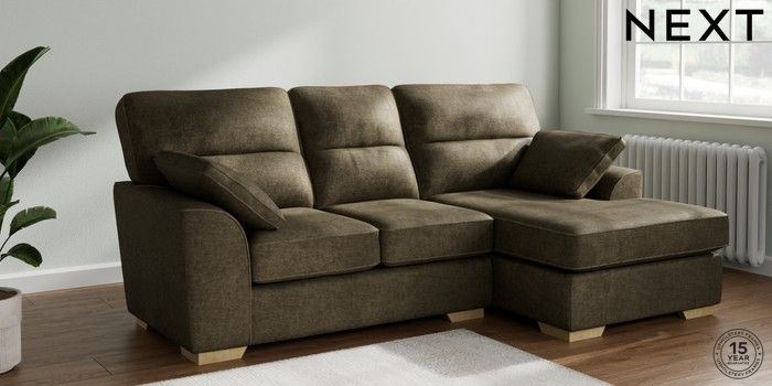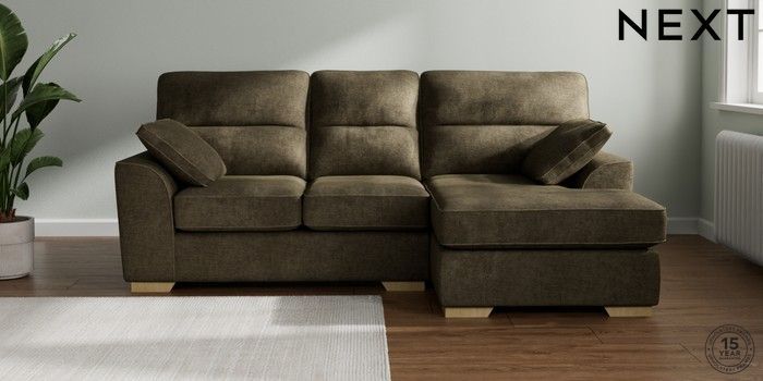 7.2.10 Stamford Highback Small Sofa Chaise - Right Hand Plush Chenille Moss Green Large Square Angle - Light | Made Click here to use our website with more accessibility support, for example screen readers