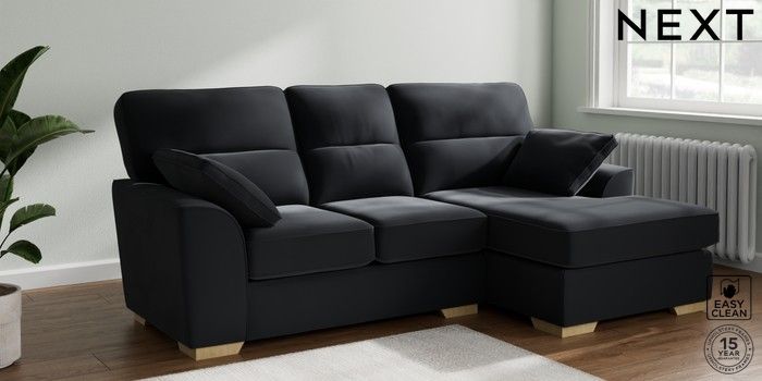 7.2.10 Stamford Highback Small Sofa Chaise - Right Hand Plush Velvet Easy Clean Charcoal Grey Large Square Angle - Light | Made Click here to use our website with more accessibility support, for example screen readers