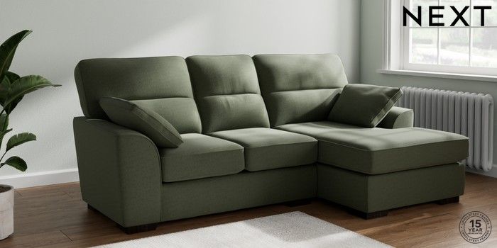 7.2.10 Stamford Highback Small Sofa Chaise - Right Hand Relaxed Linen Look Dark Green Large Square Angle - Dark | Made Click here to use our website with more accessibility support, for example screen readers
