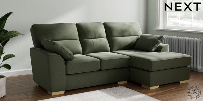 7.2.10 Stamford Highback Small Sofa Chaise - Right Hand Relaxed Linen Look Dark Green Large Square Angle - Light | Made Click here to use our website with more accessibility support, for example screen readers