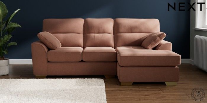 7.2.10 Stamford Highback Small Sofa Chaise - Right Hand Relaxed Linen Look Light Rust Brown Large Square Angle - Brushed Brass | Made Click here to use our website with more accessibility support, for example screen readers