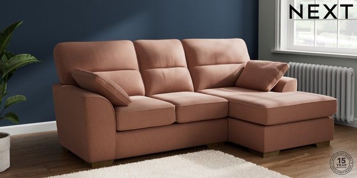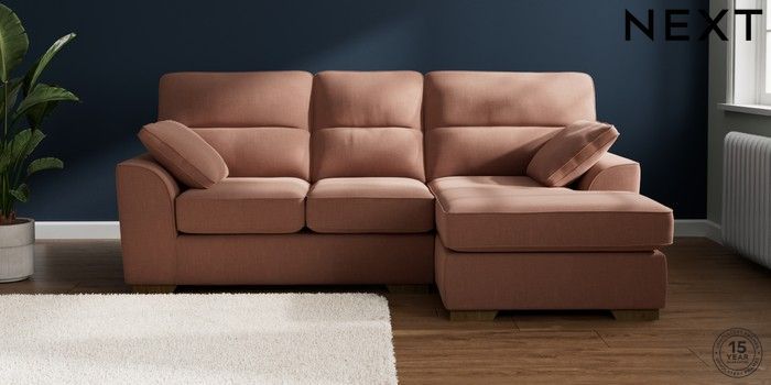 7.2.10 Stamford Highback Small Sofa Chaise - Right Hand Relaxed Linen Look Light Rust Brown Large Square Angle - Mid | Made Click here to use our website with more accessibility support, for example screen readers