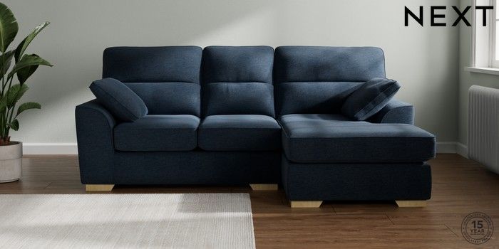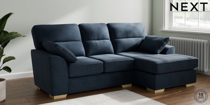 7.2.10 Stamford Highback Small Sofa Chaise - Right Hand Ripple Chenille Dark Blue Large Square Angle - Light | Made Click here to use our website with more accessibility support, for example screen readers