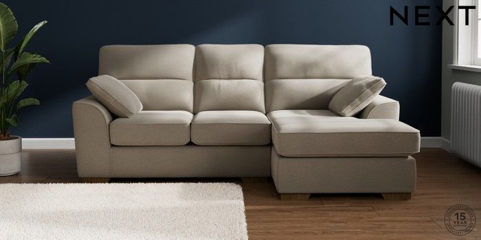 7.2.10 Stamford Highback Small Sofa Chaise - Right Hand Ripple Chenille Light Natural Large Square Angle - Mid | Made Click here to use our website with more accessibility support, for example screen readers
