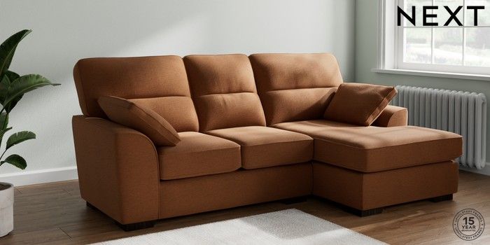 7.2.10 Stamford Highback Small Sofa Chaise - Right Hand Ripple Chenille Mid Rust Brown Large Square Angle - Dark | Made Click here to use our website with more accessibility support, for example screen readers