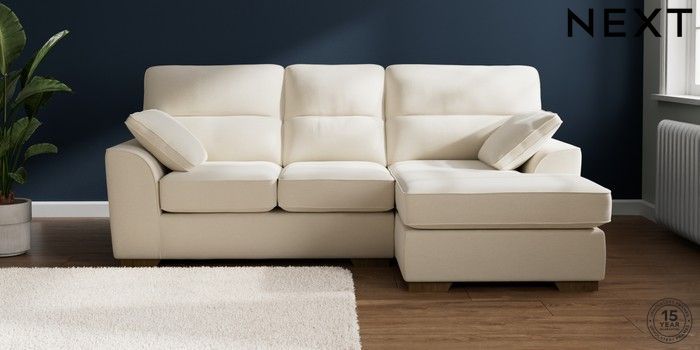 7.2.10 Stamford Highback Small Sofa Chaise - Right Hand Ripple Chenille Oyster Large Square Angle - Mid | Made Click here to use our website with more accessibility support, for example screen readers