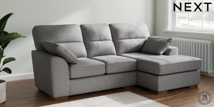 7.2.10 Stamford Highback Small Sofa Chaise - Right Hand Studio Chenille Mid Grey Large Square Angle - Mid | Made Click here to use our website with more accessibility support, for example screen readers