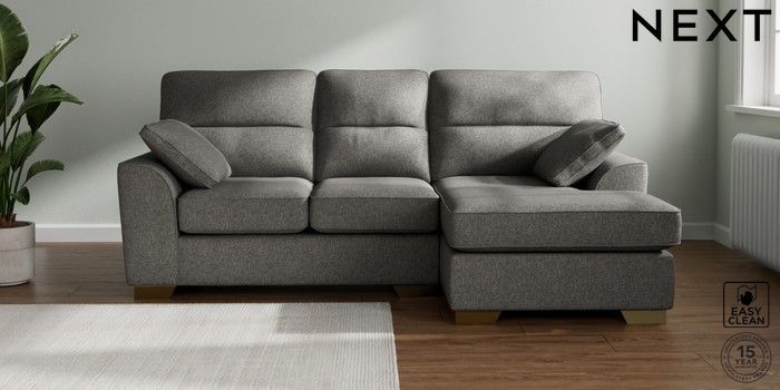 7.2.10 Stamford Highback Small Sofa Chaise - Right Hand Tweedy Blend Easy Clean Dark Grey Large Square Angle - Brushed Brass | Made Click here to use our website with more accessibility support, for example screen readers