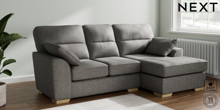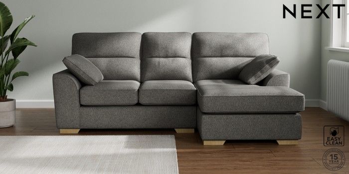 7.2.10 Stamford Highback Small Sofa Chaise - Right Hand Tweedy Blend Easy Clean Dark Grey Large Square Angle - Light | Made Click here to use our website with more accessibility support, for example screen readers