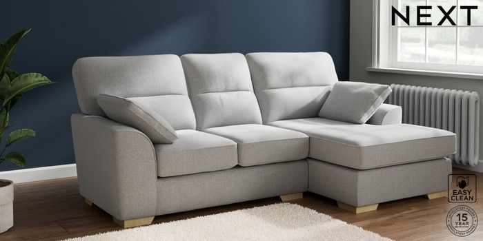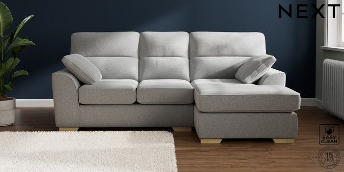 7.2.10 Stamford Highback Small Sofa Chaise - Right Hand Tweedy Blend Easy Clean Light Silver Grey Large Square Angle - Light | Made Click here to use our website with more accessibility support, for example screen readers