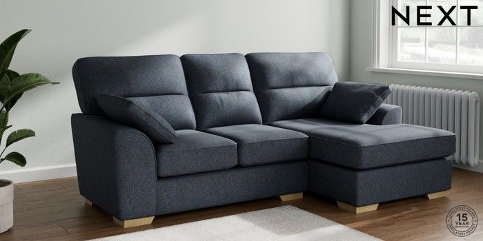 7.2.10 Stamford Highback Small Sofa Chaise - Right Hand Tweedy Chenille Navy Blue Large Square Angle - Light | Made Click here to use our website with more accessibility support, for example screen readers