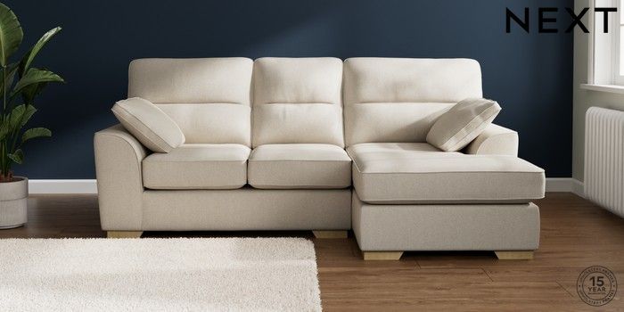 7.2.10 Stamford Highback Small Sofa Chaise - Right Hand Tweedy Chenille Oyster Large Square Angle - Light | Made Click here to use our website with more accessibility support, for example screen readers