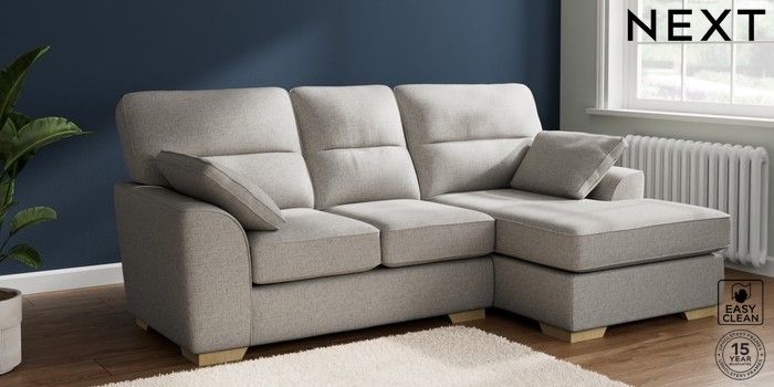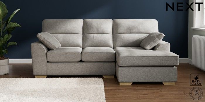 7.2.10 Stamford Highback Small Sofa Chaise - Right Hand Woven Chenille Easy Clean Light Grey Large Square Angle - Light | Made Click here to use our website with more accessibility support, for example screen readers